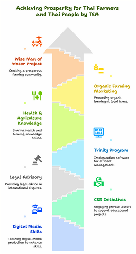 13. Provide advice and marketing on organic farming at organic farms M3 Bang Ban and M7 Bueng Borapet for the Duang Jai Hathai Rat the Water Sage project or Wise Man of Water Project (WMOW) in the future and to create the world's kitchen and bring prosperity and wealth to Thai farmers